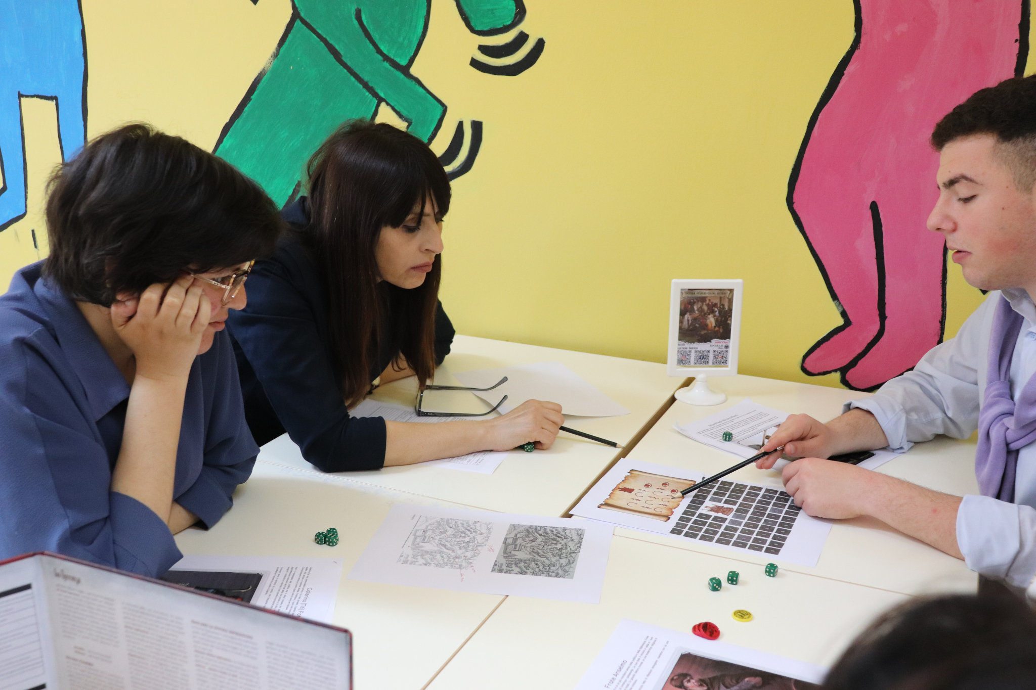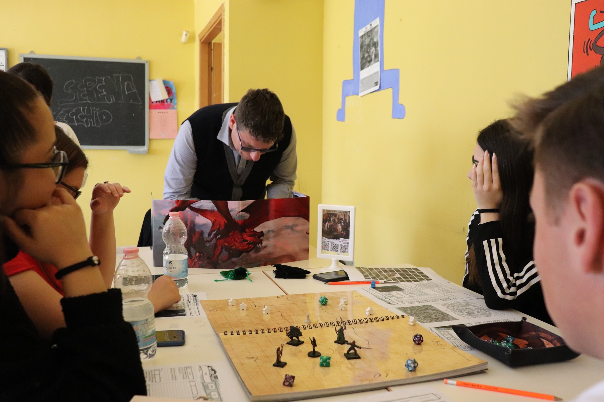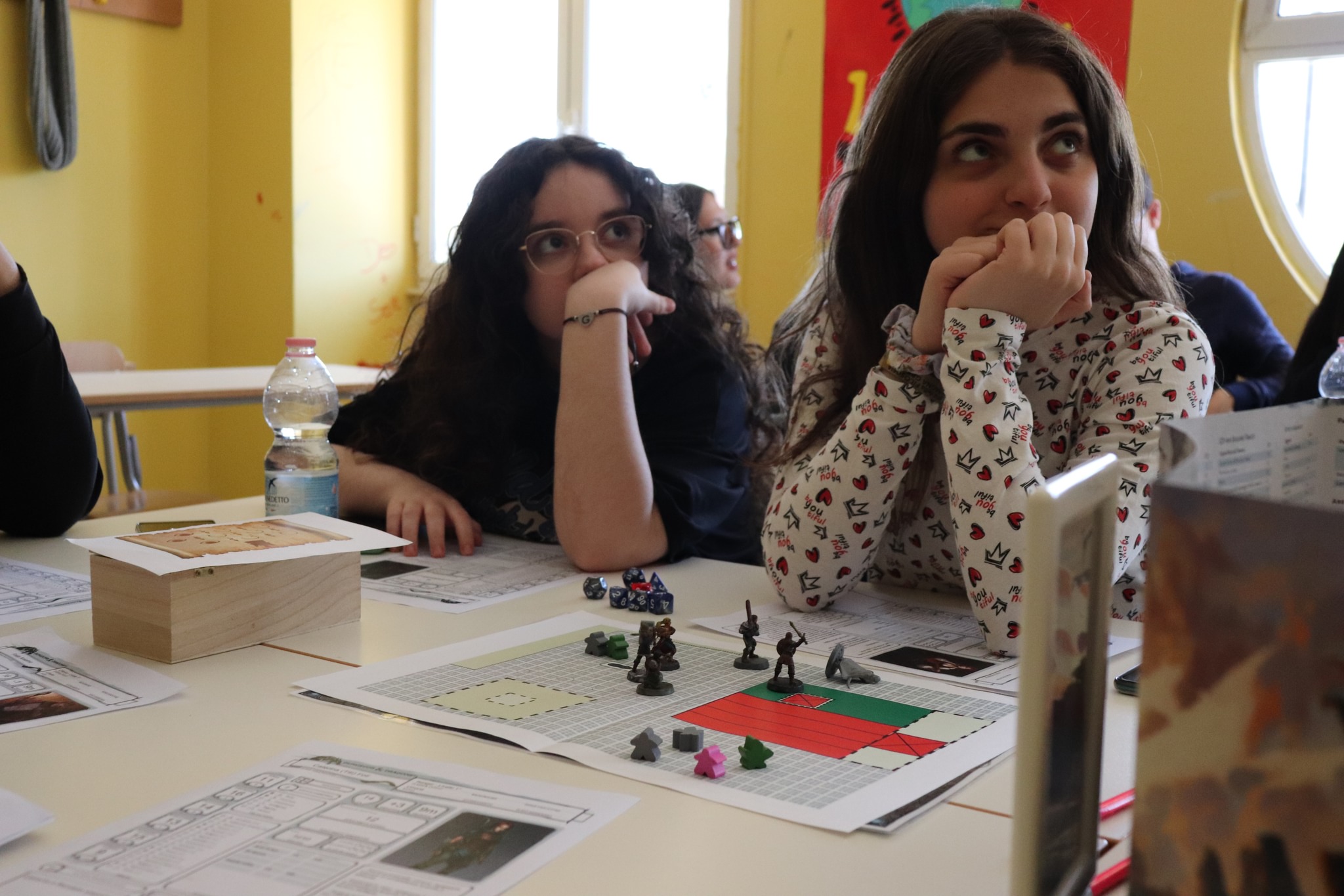 Sessione di gioco all'I.S. "Gorgia-Vittorini" di Lentini sui Vespri Siciliani a Lentini. Didattica in Ruolo ha confezionato insieme a S H I E L D - Sicilia un'avventura ad-hoc in cui gli studenti si sono immersi nel medioevo lentinese, con Alaimo da Lentini e Macalda di Scaletta sullo sfondo di una vicenda fatta di intrighi e macchinazioni politiche.